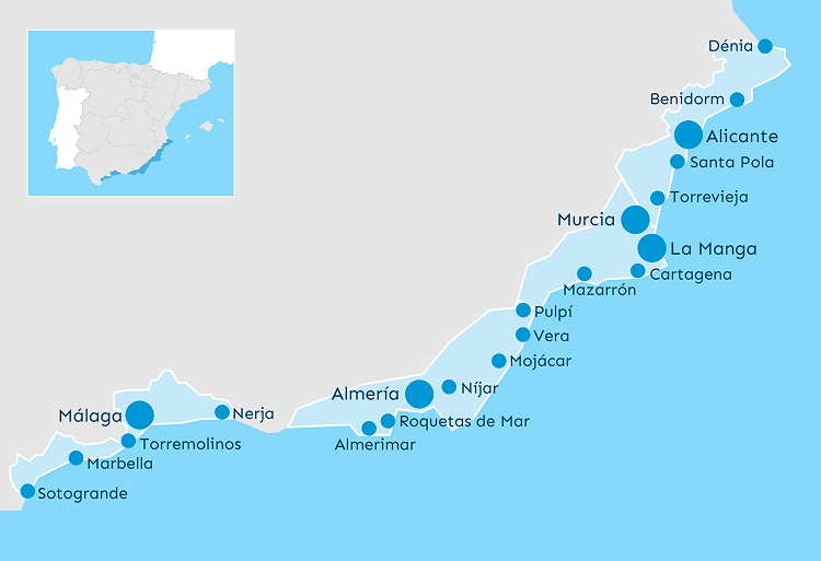 Medland specialises in the sale of new-build homes in the south-east of Spain. Our offer is mainly located on the Costa Blanca (North and South) and on the Murcia Coast, also known as Costa Cálida and Costa del Sol.